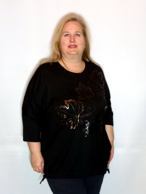 В боковых швах спрятаны карманы. По низу широкая кулиска с вставленным в нее кантом, которым Вы можете присбаривать низ туники.