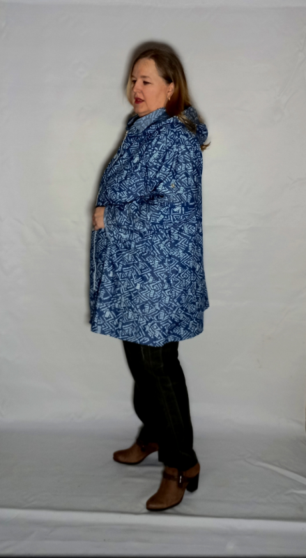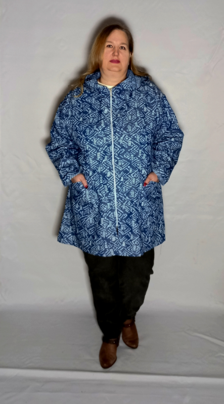 СТильный кардиган, пыльник выполнен из рубашечной джинсы. Принт прорезиненный, гладится без проблем, не облетает, осыпается, немного выступает над поверхностью ткани