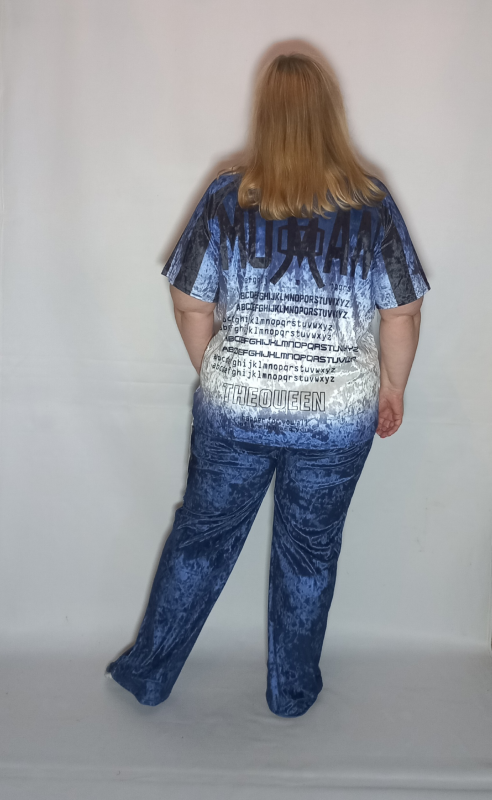 Шикарная туника- футболка выполнена из мягкого, очень эластичного мраморного велюра с рисунком.