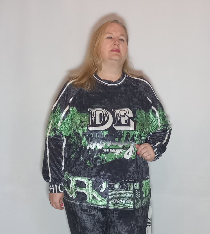 Шикарная  туника- футболка выполнена из мягкого, очень эластичного мраморного велюра с рисунком.